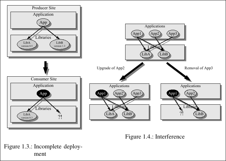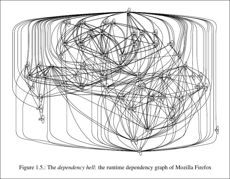 Perhaps most notoriously, multiple applications may demand different, mutually incompatible versions of the same shared library. When this conflict occurs, one program’s gain is another’s crash, leaving the system as a whole unstable.